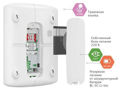 Встроенная аккумуляторная батарея обеспечивает автономную работу Контакт GSM-14 в условиях отключения электропитания, ведь часто электрощит вынесен за пределы квартиры, на лестничную площадку. В итоге, при попытке проникновения