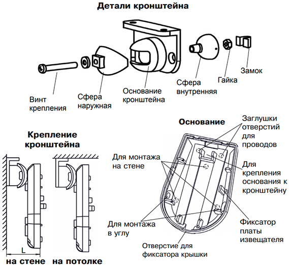 - Наличие кронштейна для изменения положения зоны обнаружения в пространстве.