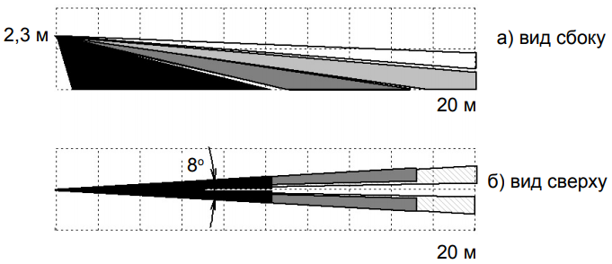 | Угол зоны (Охрана периметра) | 8° поверхностная |